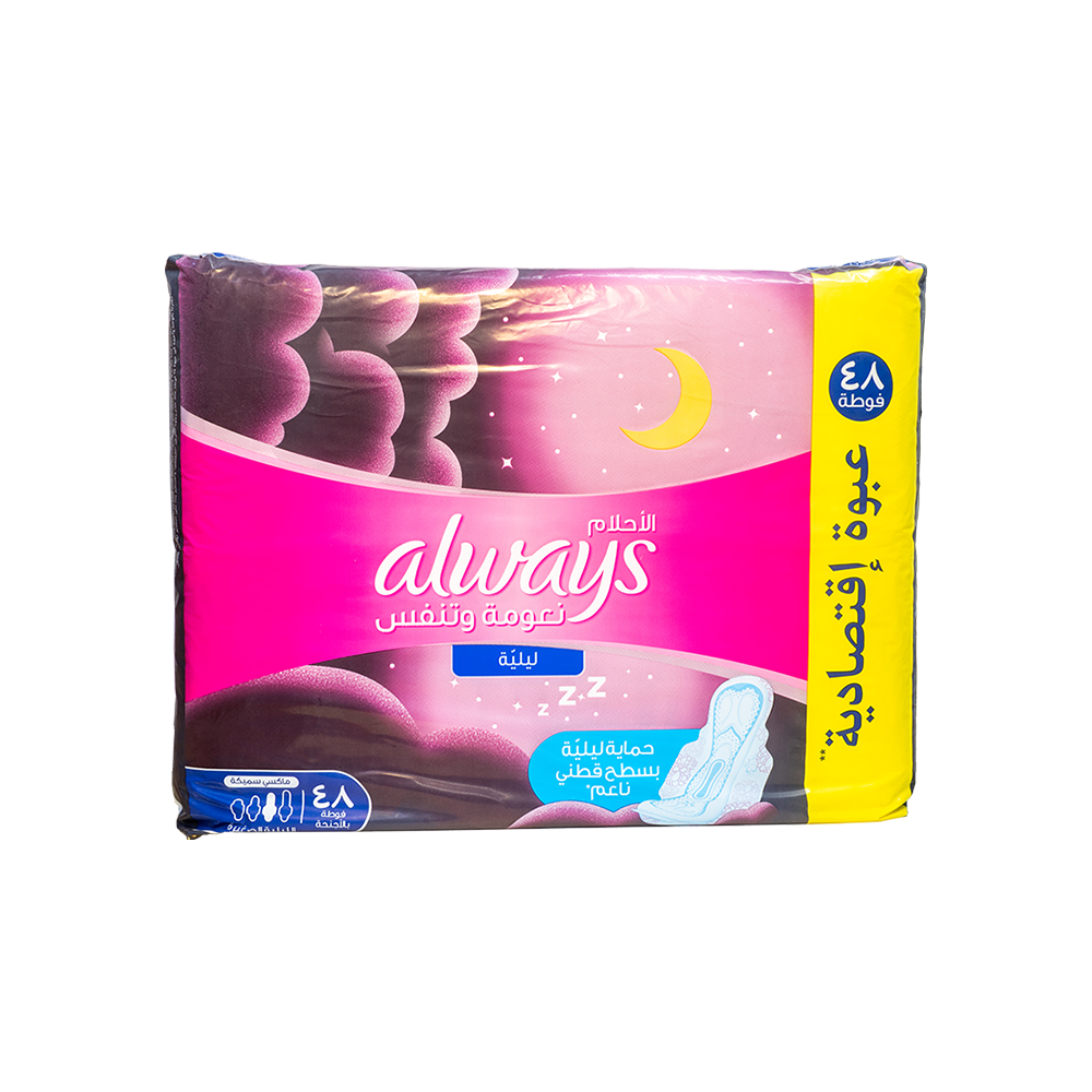 فوط أولويز "الأحلام" الليلية ماكسي سميكة - 48 فوطة (عبوة اقتصادية)