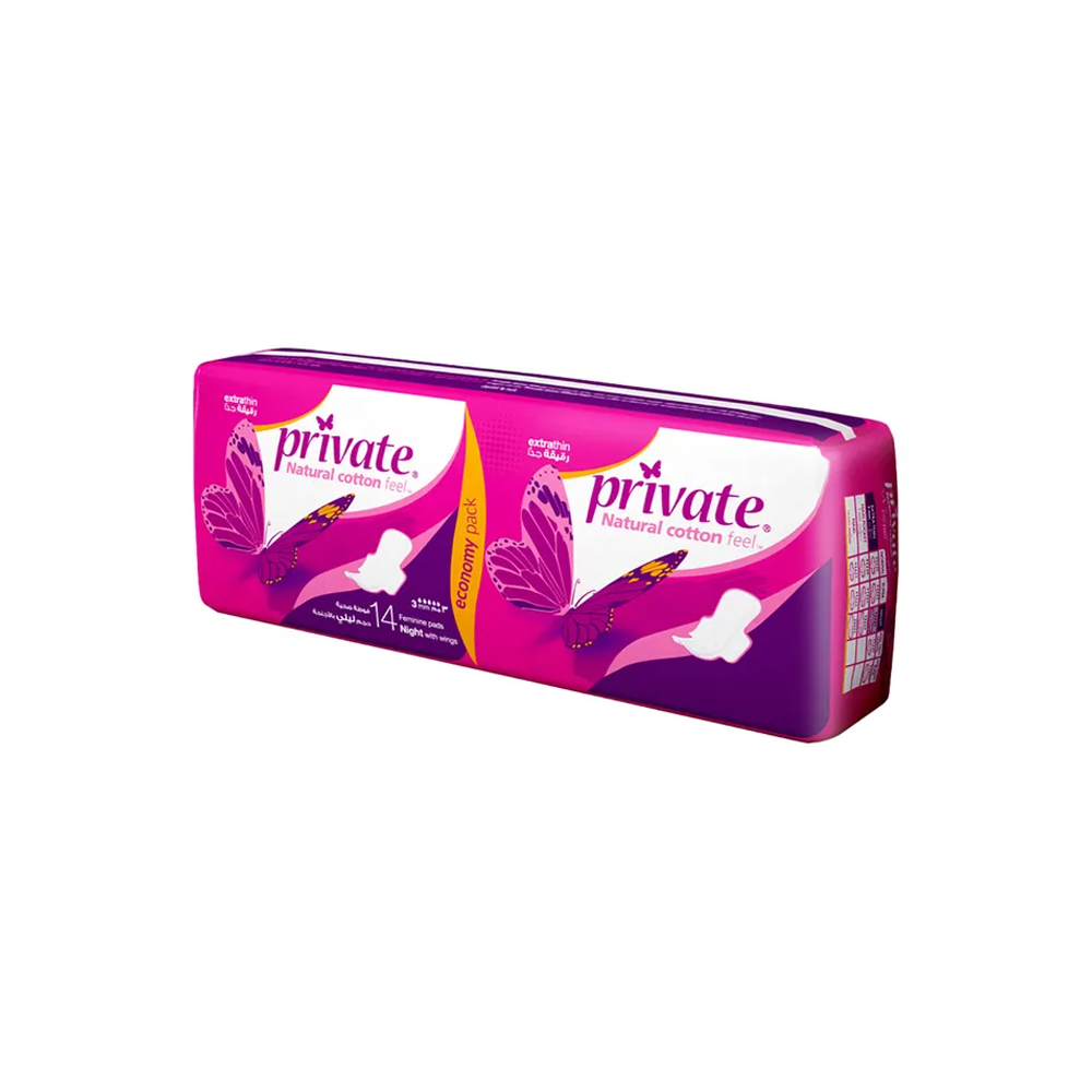 استمتعي بليالٍ هادئة ومريحة دون قلق مع فوط برايفت الصحية الليلية رقيقة جداً. صُممت هذه الفوط خصيصاً لتوفير أقصى درجات الحماية والراحة خلال ساعات النوم الطويلة، بفضل تصميمها المبتكر فائق الرقة الذي يمنحك شعوراً طبيعياً بالحرية والنعومة.