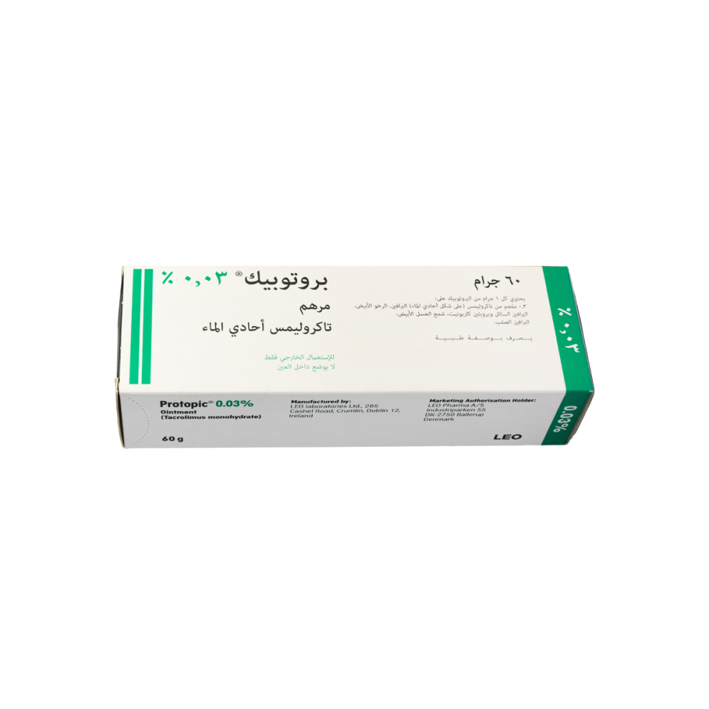 مرهم بروتوبيك 0.03% - تاكروليمس أحادي الماء 60 جرام | علاج فعال للإكزيما (التهاب الجلد التحسسي)