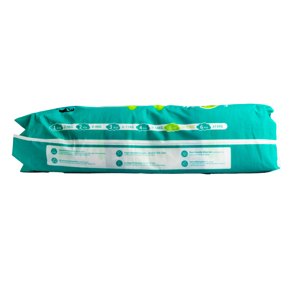 - حماية من التسرب حول الجسم: تصميم الحفاضات يوفر حماية كاملة حول جسم الطفل، مما يمنع التسرب حتى مع الحركة الكثيرة.