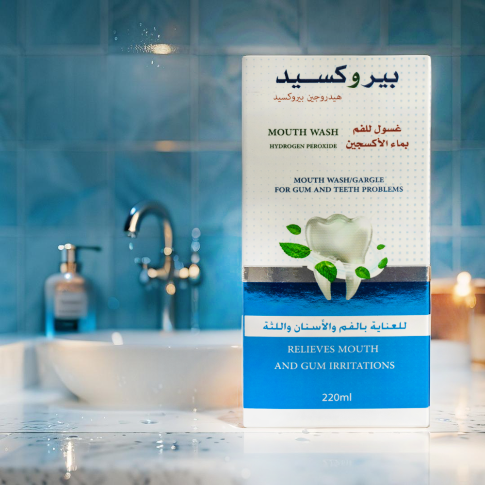 غسول الفم بيروكسيد بماء الأكسجين - للعناية باللثة والأسنان وتخفيف التهيج