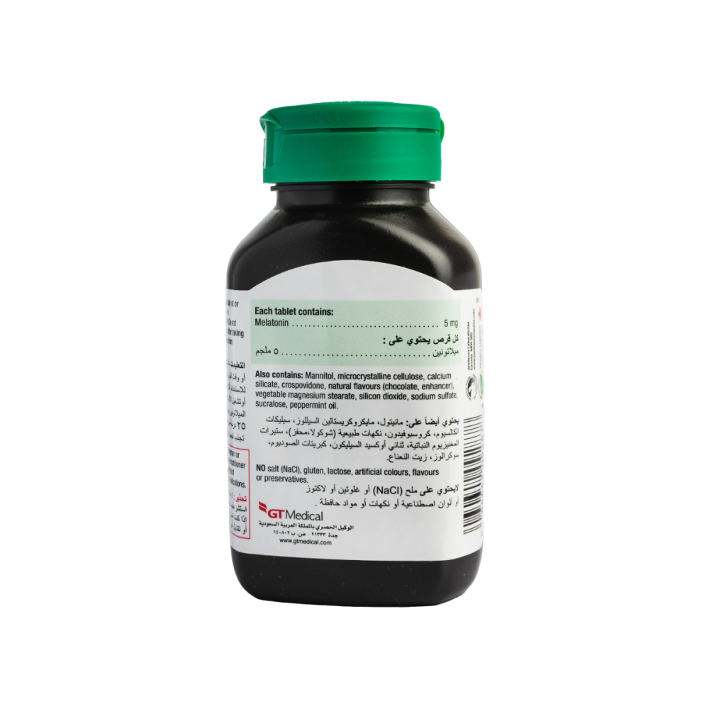 - المكون الفعال: ميلاتونين 5 مجم.