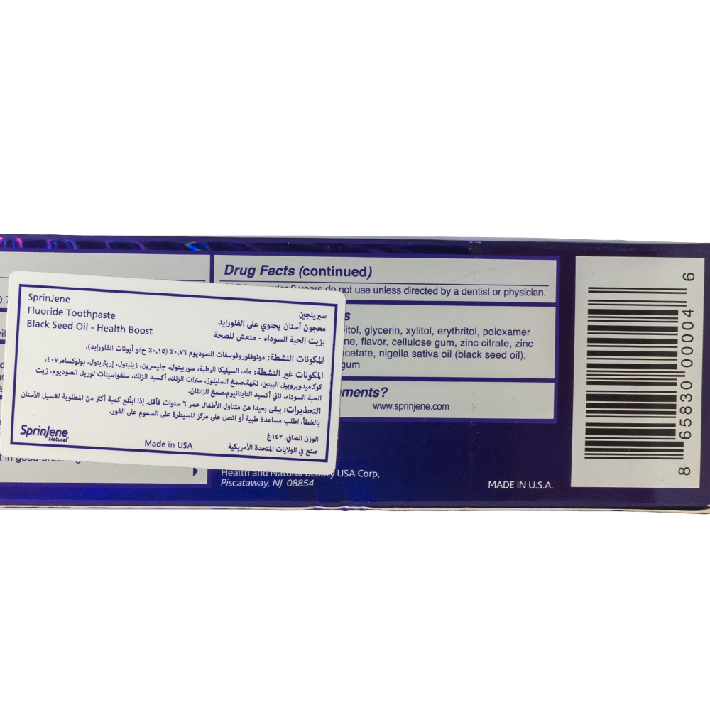 سبرينجين معجون أسنان بزيت الحبة السوداء منعش للصحة 142 جم | SPRINJENE TOOTHPASTE HEALTH BOOST 142GM