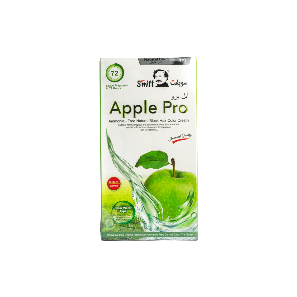 ودعي الشعر الأبيض واستقبلي شعرًا أسود طبيعيًا ولامعًا مع صبغة سوفت آبل برو للشعر، الحل المبتكر لصبغ الشعر الأسود في راحة منزلكِ. تتميز هذه الصبغة بتركيبة خالية من الأمونيا، مما يجعلها لطيفة على فروة الرأس والشعر، وتمنحكِ لونًا طبيعيًا يدوم طويلاً دون إتلاف الشعر.