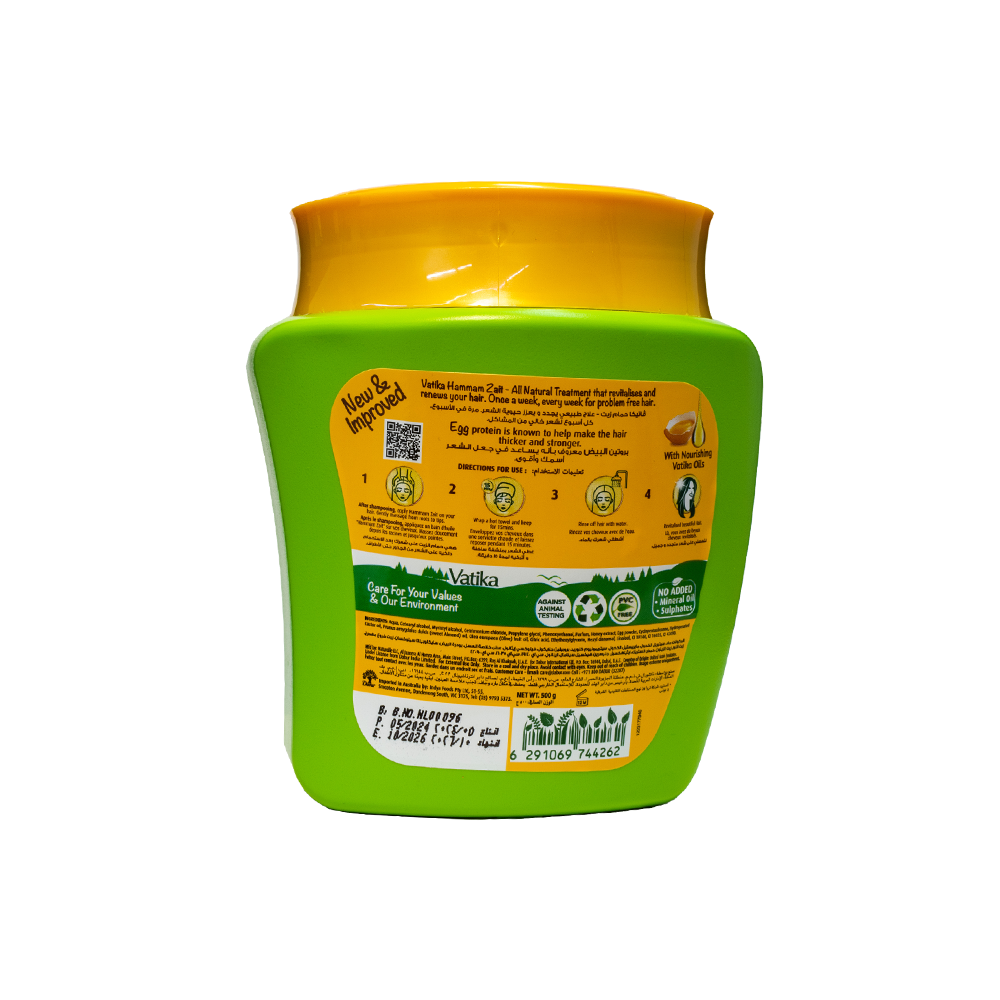 - مكونات طبيعية مغذية: غني ببروتين البيض الأساسي وزيوت فاتيكا الطبيعية المعروفة بفوائدها للشعر.