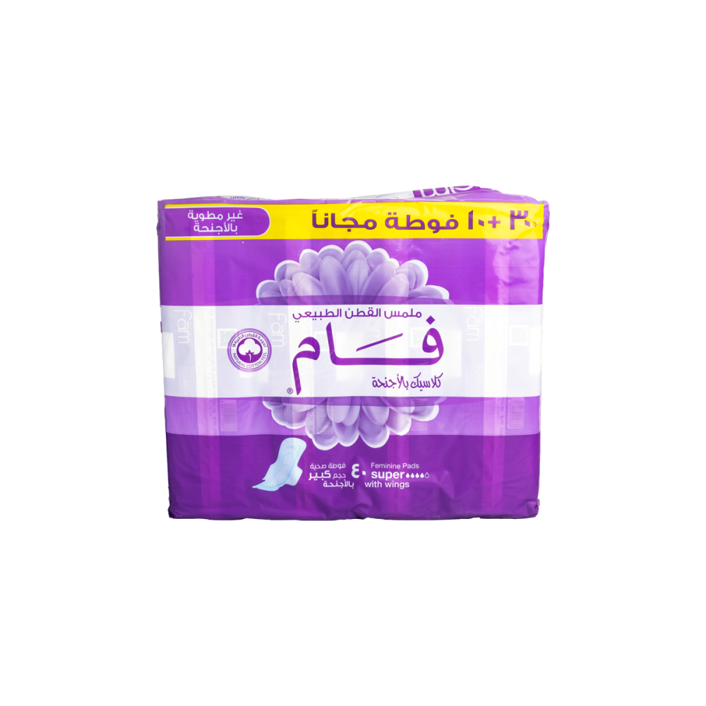 فوط صحية فام كلاسيك سوبر بالأجنحة – ملمس القطن الطبيعي وحماية فائقة (40 قطعة)
