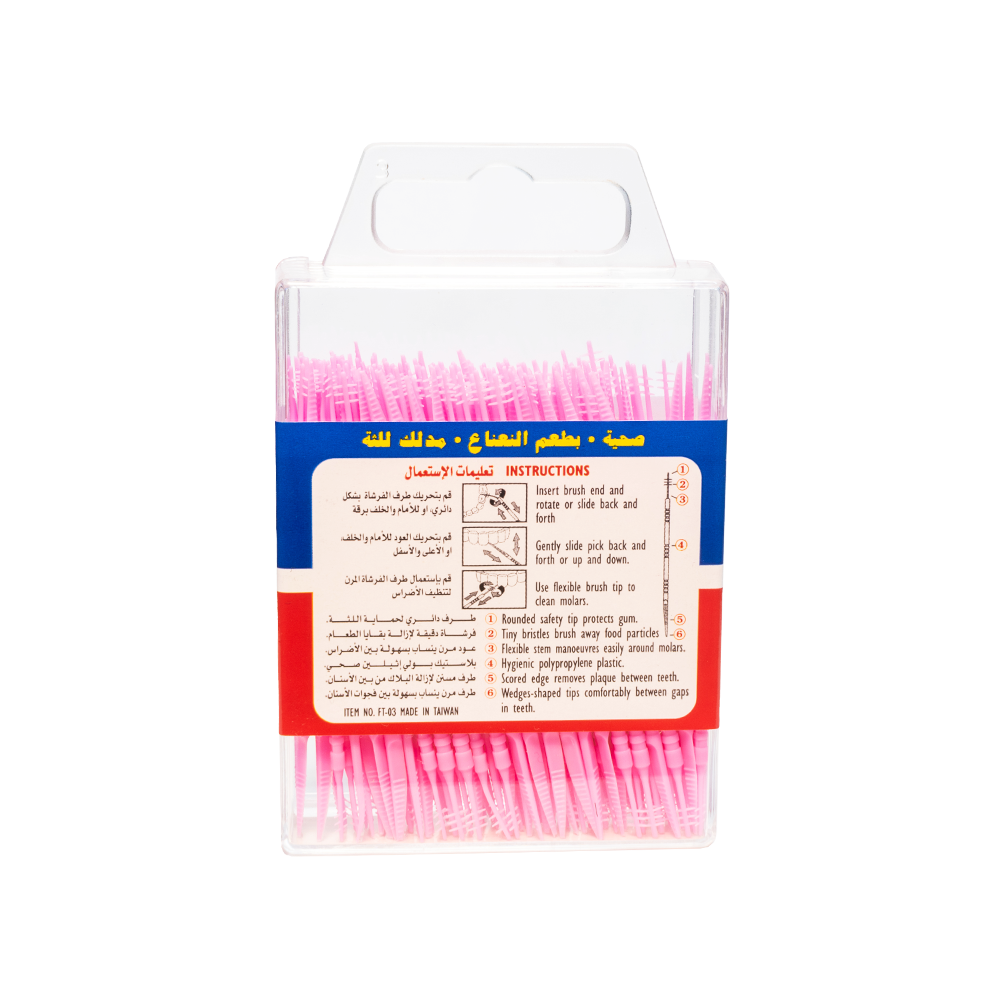 - تنظيف دقيق وفعال: تصميم فريد من مادة بلاستيكية ناعمة ومرنة يضمن وصولاً مثالياً لتنظيف ما بين الأسنان بفعالية.