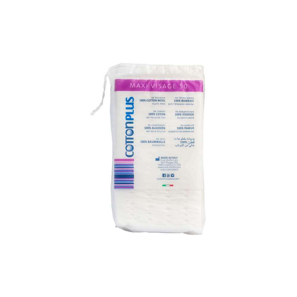 مسحات قطن بلس المربعة لإزالة المكياج وتنظيف الوجه (Maxi Visage). صُممت هذه المسحات القطنية الفاخرة لتوفير تجربة تنظيف لطيفة وفعالة، بفضل جودتها العالية ونسيجها المزدوج المبتكر الذي يلبي احتياجات جميع أنواع البشرة، حتى الأكثر حساسية.