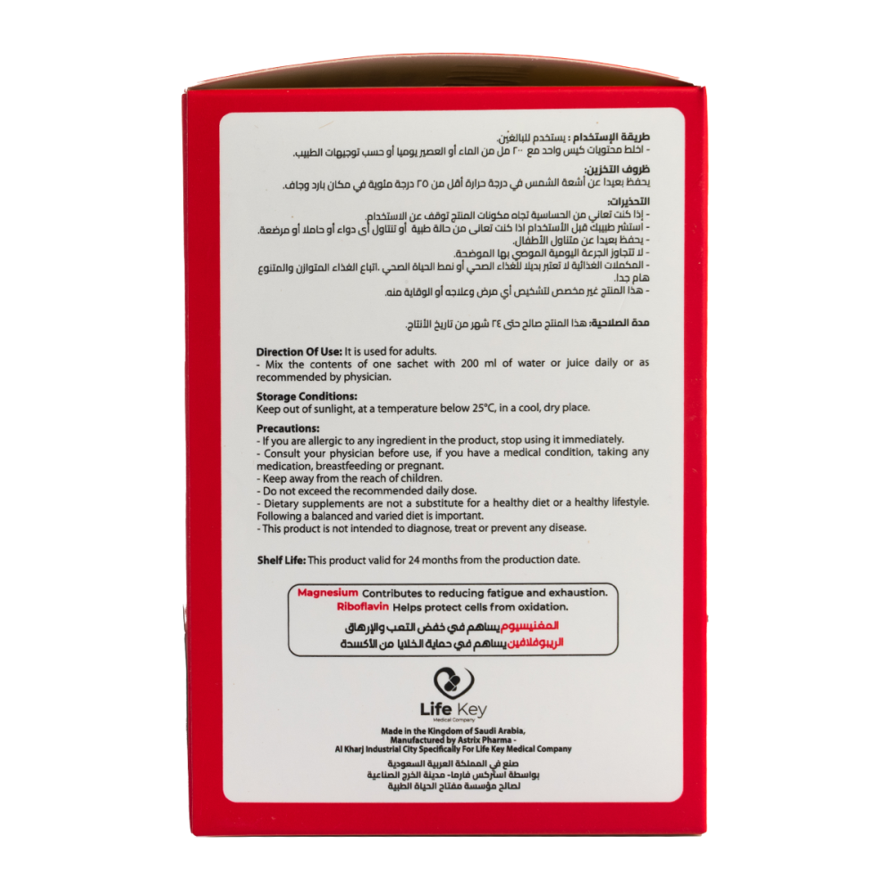 - التحذيرات: إذا كنت تعاني من الحساسية تجاه أي من مكونات المنتج، توقف عن الاستخدام. يجب استشارة الطبيب قبل الاستخدام إذا كانت لديك حالة طبية، أو تتناول أي دواء، أو كنتِ حاملاً أو مرضعة. يُحفظ بعيداً عن متناول الأطفال. لا تتجاوز الجرعة اليومية الموصى بها. المكملات الغذائية لا تغني عن نظام غذائي صحي ومتوازن. هذا المنتج غير مخصص لتشخيص أو علاج أو الوقاية من أي مرض.