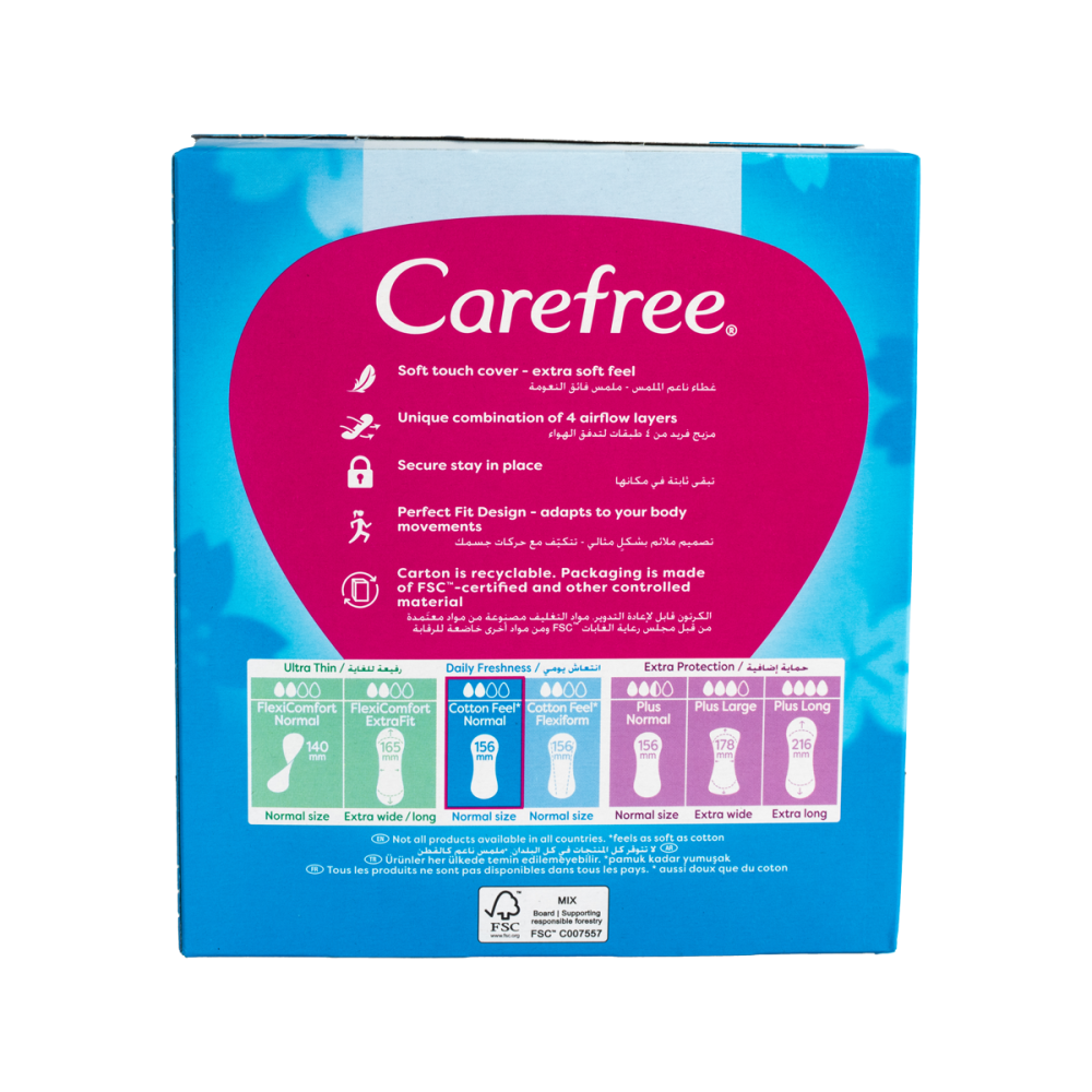 • حماية فعالة من الإفرازات اليومية للحفاظ على جفاف المنطقة الحساسة.