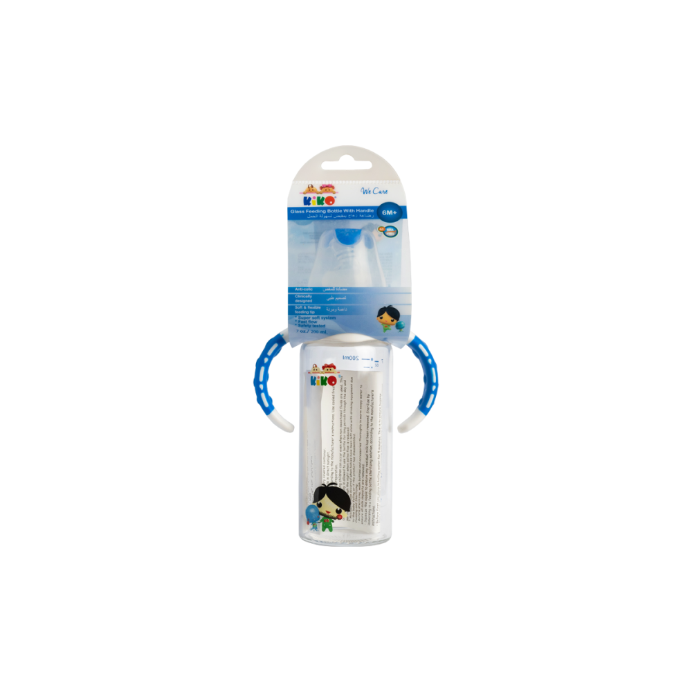 كيكو رضاعة زجاجية للأطفال بيدين 200مل | KIKO GLASS FEEDING BOTTLE WITH HANDS 200ML