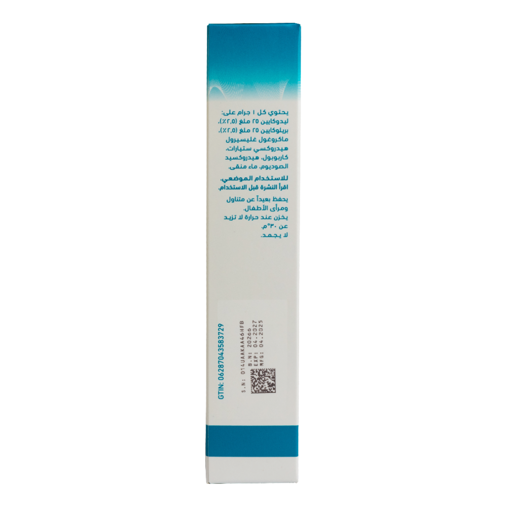 - تخدير موضعي فعال: يجمع بين قوتي الليدوكايين (2.5%) والبريلوكايين (2.5%) لتوفير تأثير تخدير قوي يبدأ بسرعة ويستمر لفترة كافية.