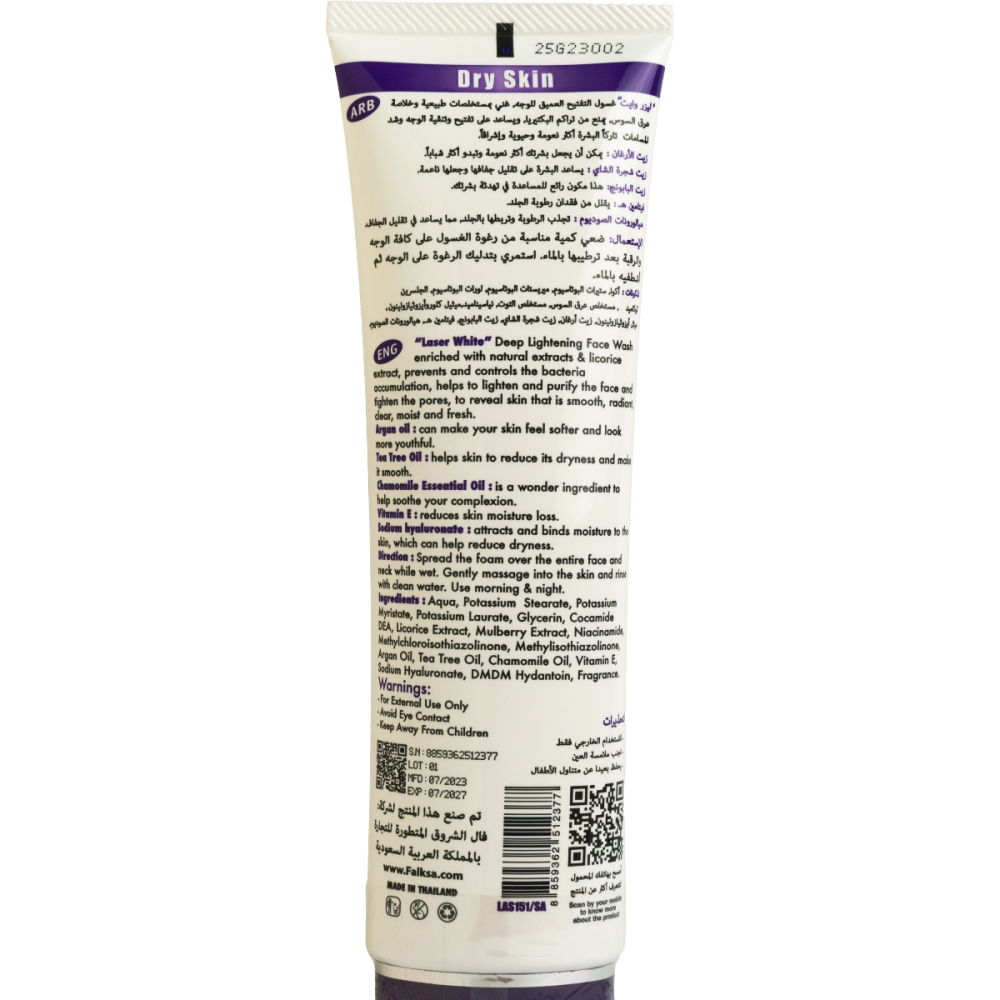 امنحي بشرتك الجافة العناية الفائقة التي تستحقها مع غسول الوجه للتفتيح العميق من ليزر وايت.