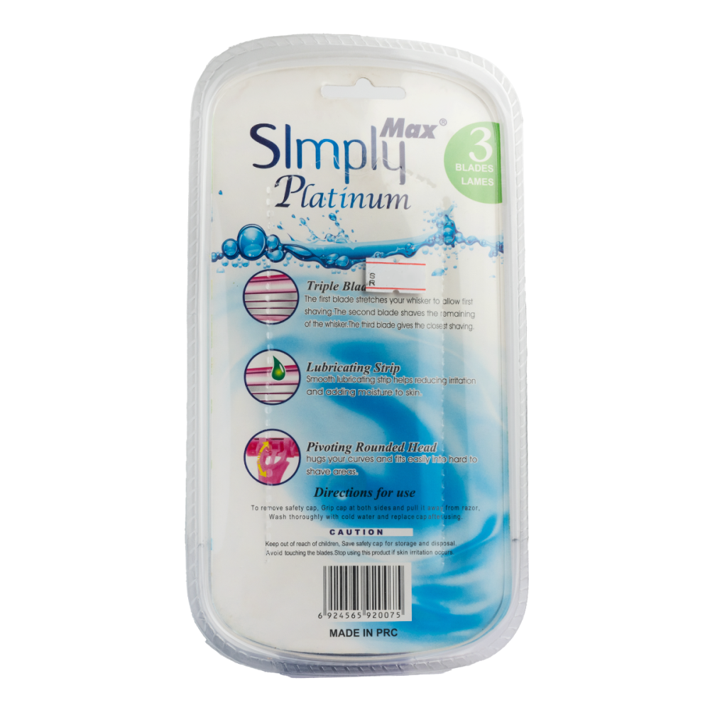 بشرة ناعمة وخالية من العيوب مع شفرات حلاقة سيمبلي ماكس بلاتينيوم 3 شفرات (4 قطع)