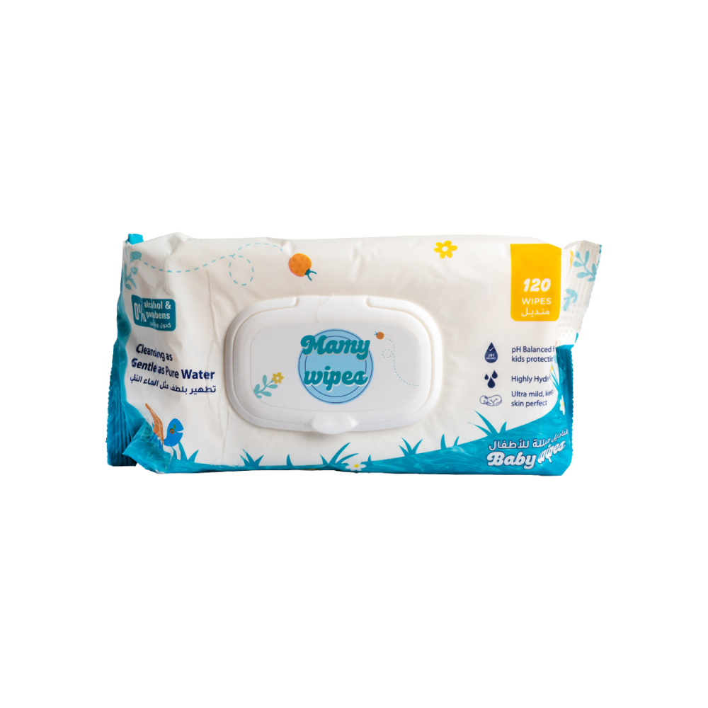 مناديل مامي المبللة للأطفال، المصممة خصيصًا لتوفير تنظيف فعال ولطيف كالمياه النقية لبشرة طفلك الرقيقة والحساسة. بتركيبتها الفريدة الخالية تمامًا من الكحول والبارابين، تضمن لكِ مناديل مامي عناية فائقة تحمي وترطب بشرة صغيرك الحساسة، تاركةً إياها نظيفة ومنتعشة وناعمة كالحرير.