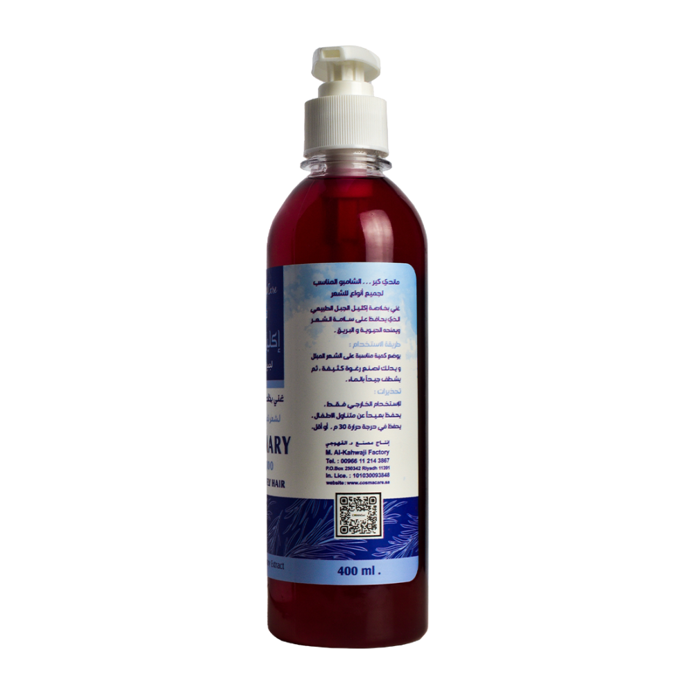 غني بخلاصة إكليل الجبل الطبيعي الذي يحافظ على سلامة الشعر ويمنحه الحيوية والبريق .
