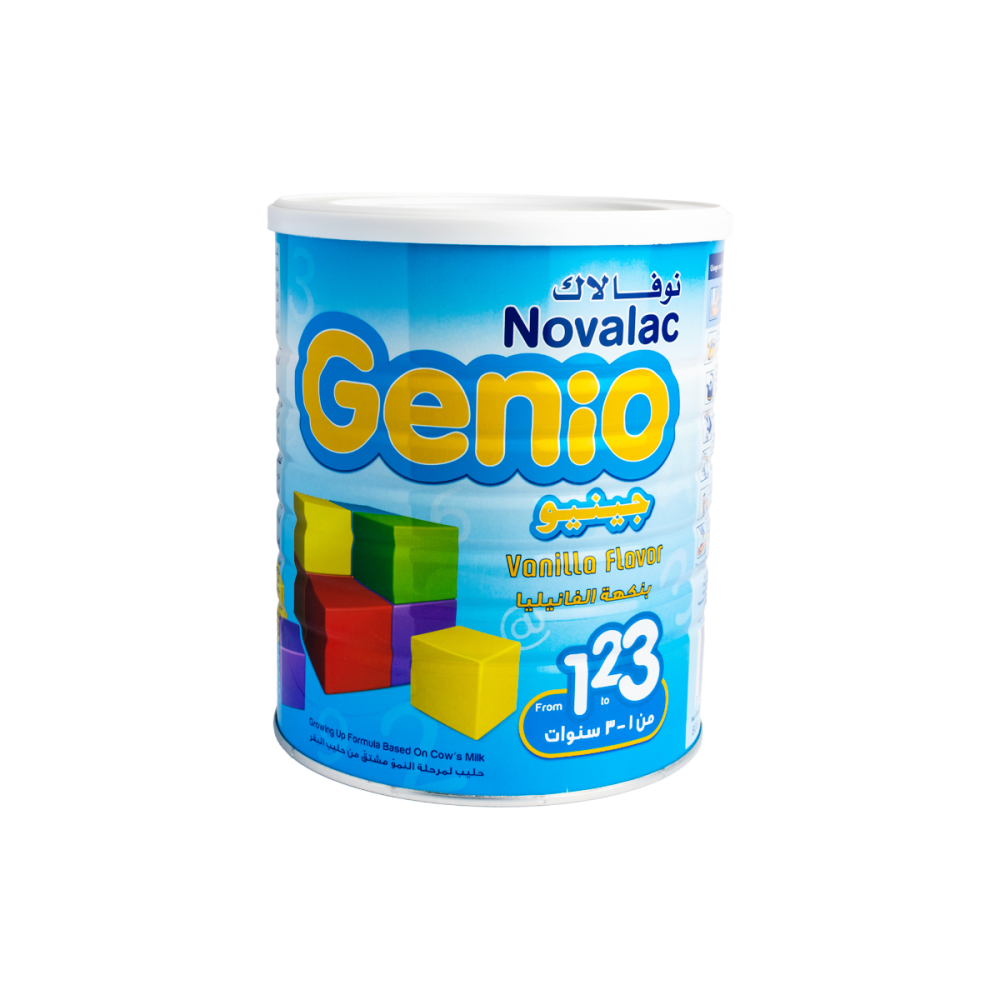امنحي طفلك أساسًا قويًا للنمو والتطور مع حليب نوفالاك جينيو بنكهة الفانيلا، تركيبة النمو المتقدمة من حليب البقر، المصممة خصيصًا للأطفال من عمر 1 إلى 3 سنوات .