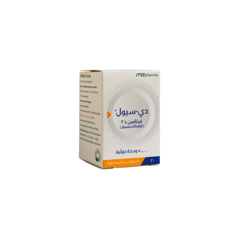 كبسولات دي-سيول فيتامين د3 - 50,000 وحدة دولية | لعلاج نقص فيتامين د (20 كبسولة)