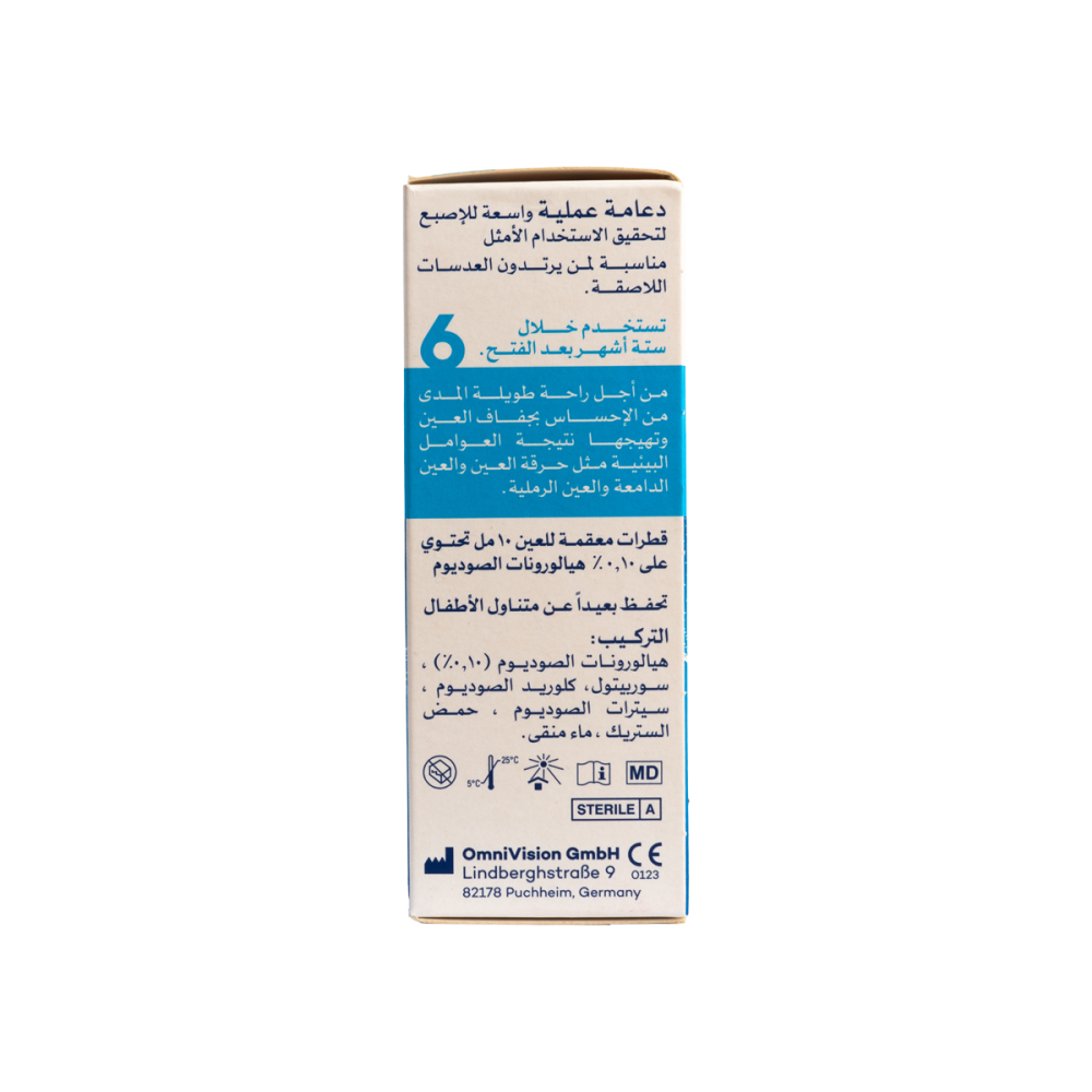 - قطرات معقمة للعين تحتوي على 0.1% هيالورونات الصوديوم.