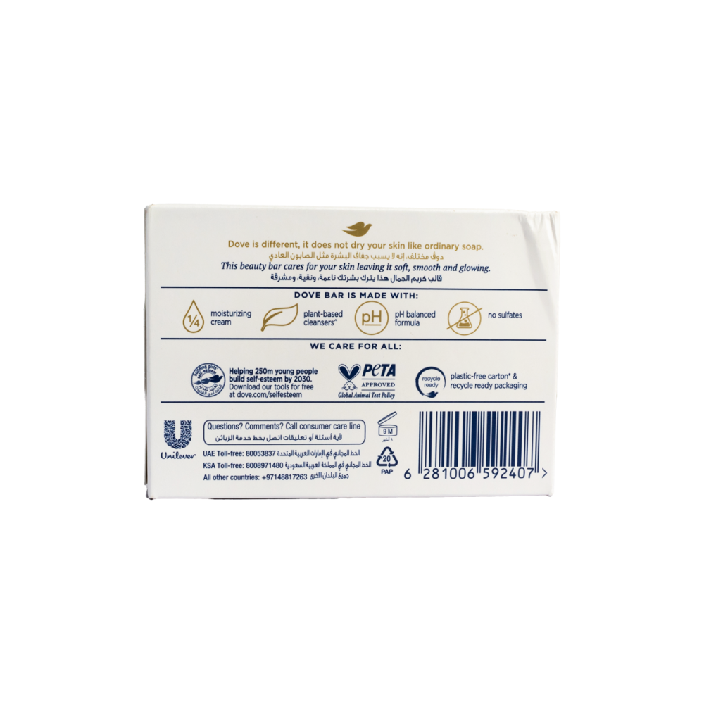 صابون دوف الأبيض (بيوتي كريم بار) - 135 جرام | خالٍ من الكبريتات، 1/4 كريم مرطب لبشرة ناعمة، نقية، ومشرقة