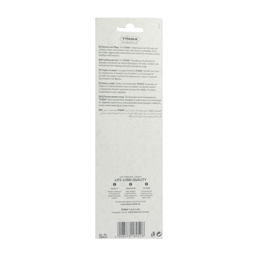 مشط تيتانيا شوكة لفك تشابك الشعر - أسنان واسعة، جودة ألمانية | لتصفيف الشعر الكثيف والمجعد بلطف (قابل لإعادة التدوير 100%)